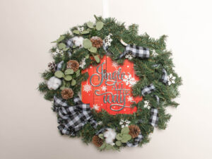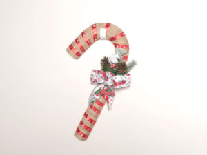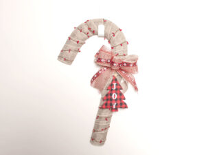 Christmas – Burlap Candy Cane with Pinecones & Cotton