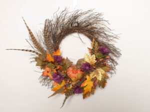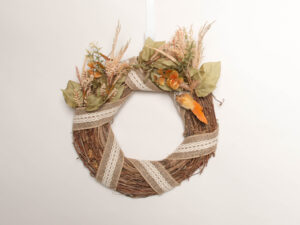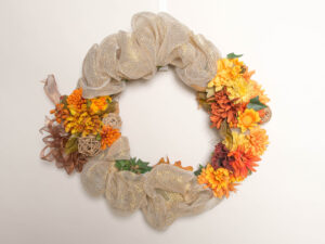 Grapevine Autumn Wreath with Gold Mesh & Flowers