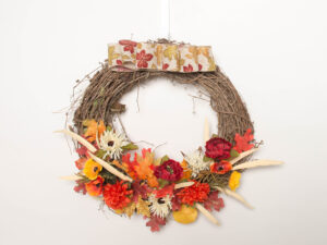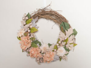 Grapevine Wreath with Autumn Flowers & Leaves