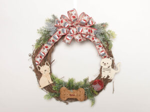 Material: Poly mesh, ribbon, burlap, plastic sign